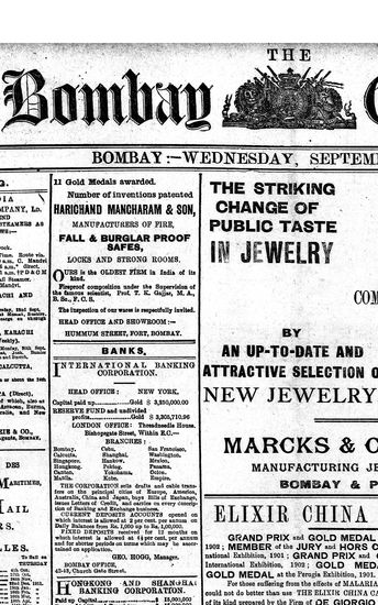 The Bombay Gazette, 21 September 1910