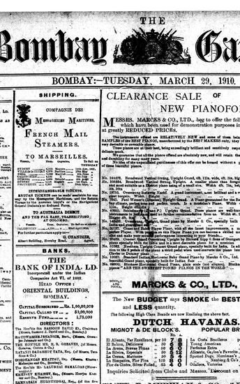 The Bombay Gazette, 29 March 1910