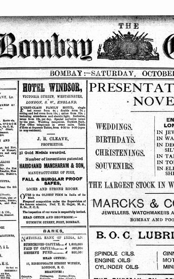 The Bombay Gazette, 29 October 1910