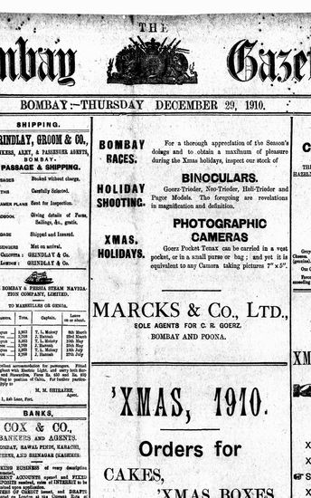 The Bombay Gazette, 29 December 1910