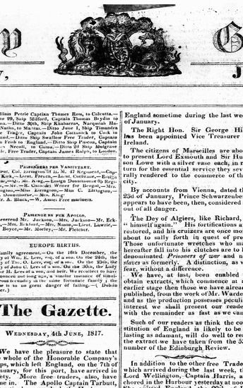 The Bombay Gazette, 4 June 1817