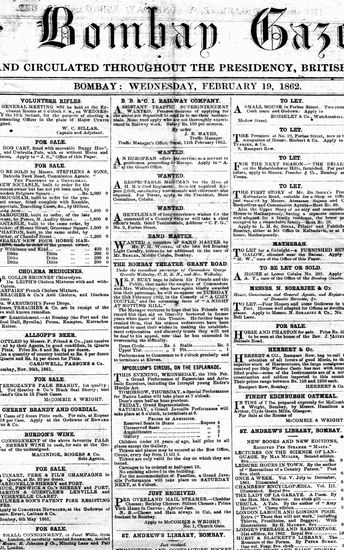 The Bombay Gazette, 19 February 1862