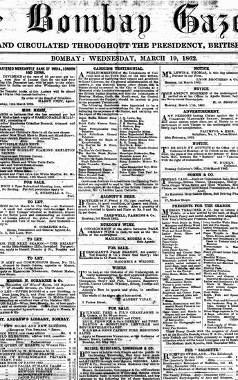 The Bombay Gazette, 19 March 1862