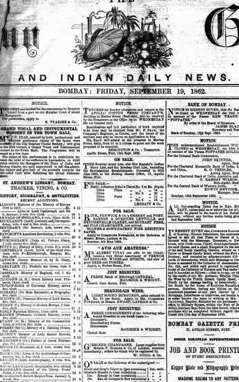 The Bombay Gazette, 19 September 1862