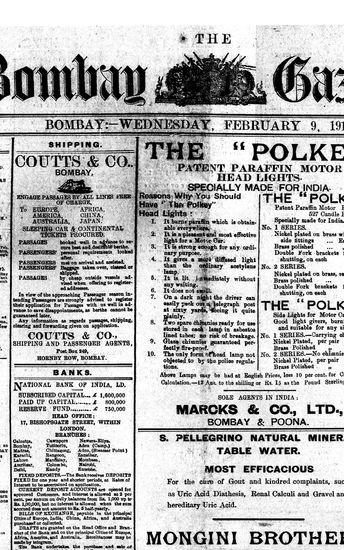 The Bombay Gazette, 9 February 1910