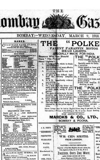 The Bombay Gazette, 9 March 1910