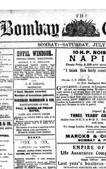 The Bombay Gazette, 9 July 1910