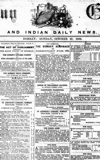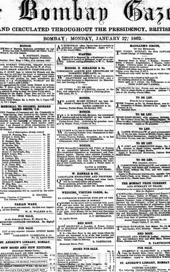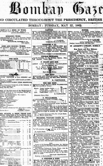 The Bombay Gazette, 27 October 1862