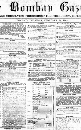 The Bombay Gazette, 27 February 1862