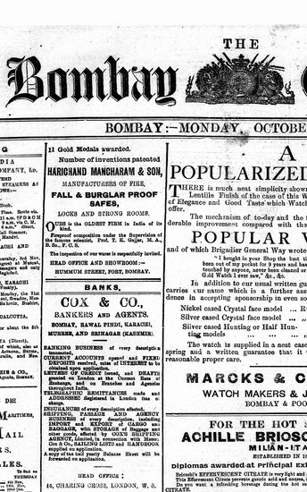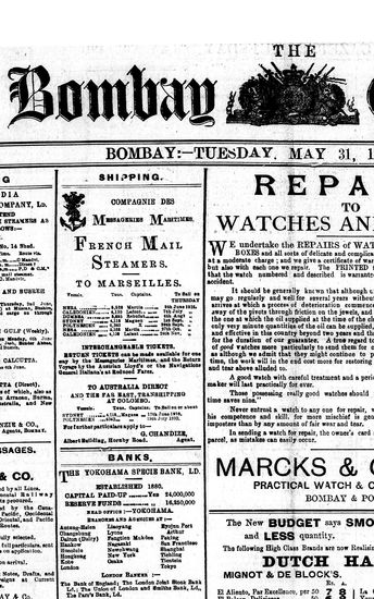 The Bombay Gazette, 3 December 1910
