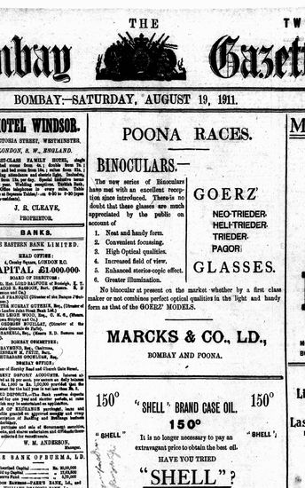 The Bombay Gazette, 19 August 1911