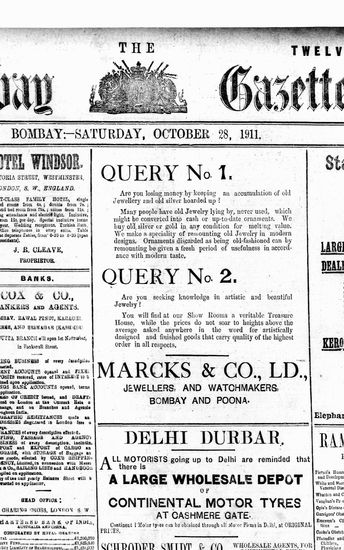 The Bombay Gazette, 28 October 1911