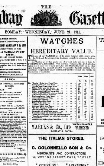 The Bombay Gazette, 21 June 1911