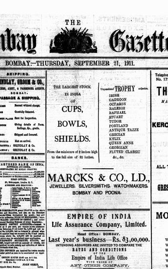 The Bombay Gazette, 21 September 1911