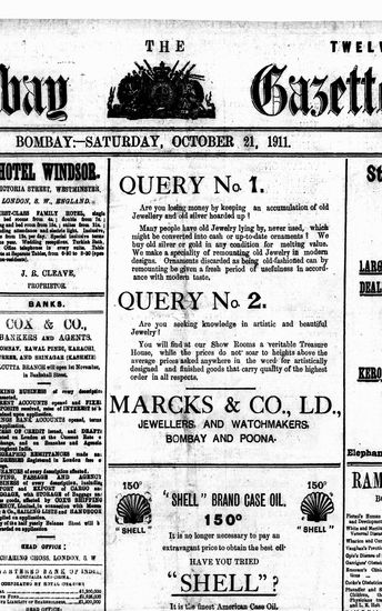 The Bombay Gazette, 21 October 1911
