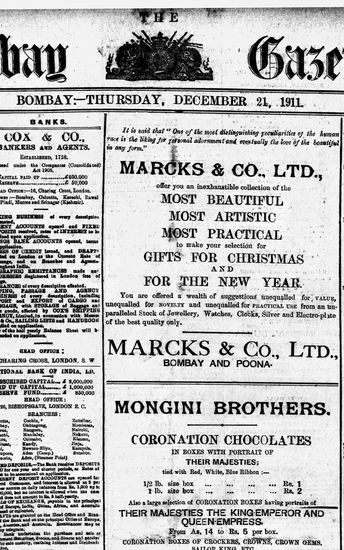 The Bombay Gazette, 21 December 1911
