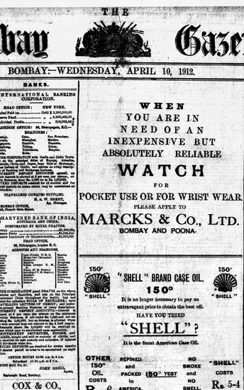 The Bombay Gazette, 10 April 1912
