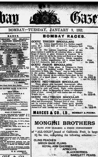 The Bombay Gazette, 9 January 1912