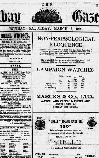 The Bombay Gazette, 9 March 1912