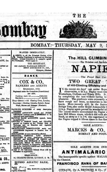 The Bombay Gazette, 9 May 1912