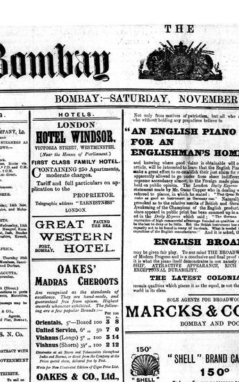 The Bombay Gazette, 9 November 1912