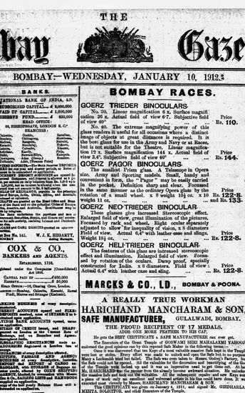 The Bombay Gazette, 10 December 1912