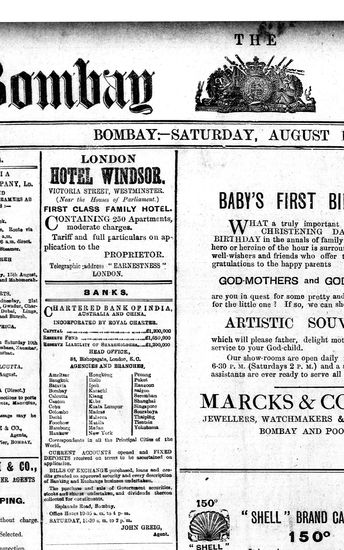 The Bombay Gazette, 10 August 1912
