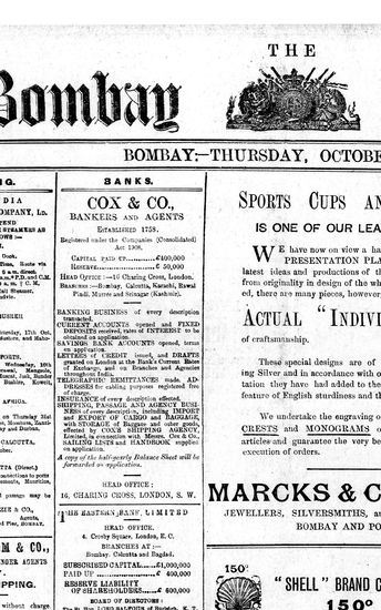 The Bombay Gazette, 10 October 1912