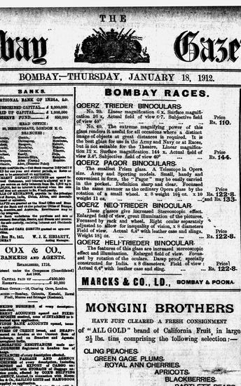 The Bombay Gazette, 18 December 1912