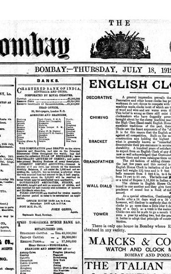 The Bombay Gazette, 18 October 1912