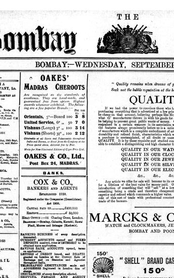 The Bombay Gazette, 18 September 1912
