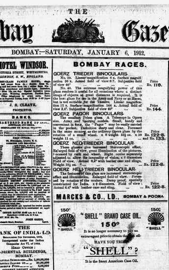 The Bombay Gazette, 6 January 1912