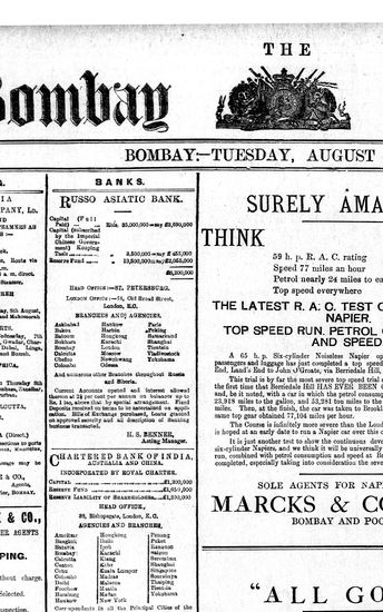 The Bombay Gazette, 6 August 1912