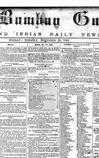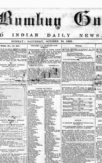 The Bombay Gazette, 10 October 1863