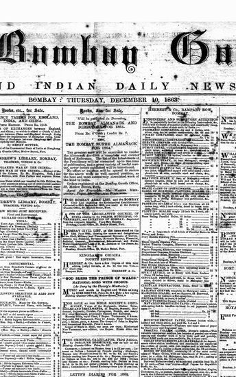 The Bombay Gazette, 10 December 1863