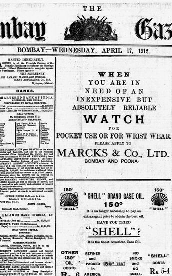 The Bombay Gazette, 17 December 1912