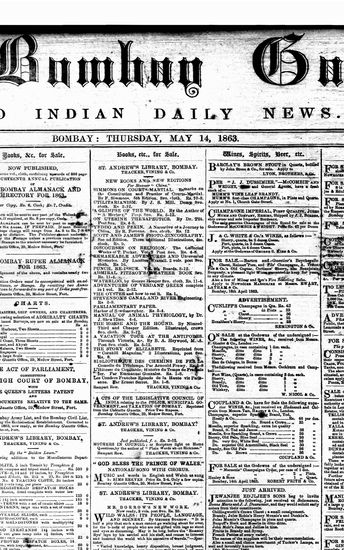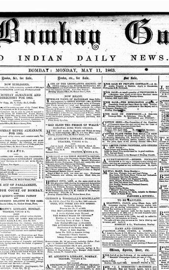 The Bombay Gazette, 12 October 1863