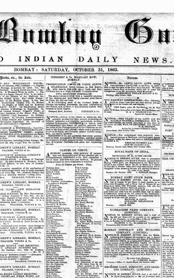 The Bombay Gazette, 31 October 1863
