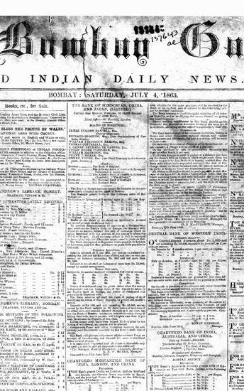 The Bombay Gazette, 3 November 1863