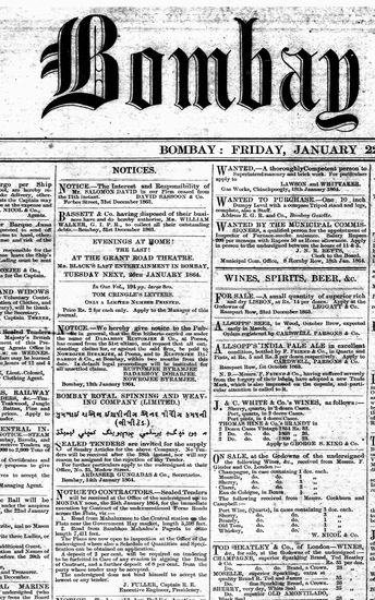 The Bombay Gazette, 22 January 1864