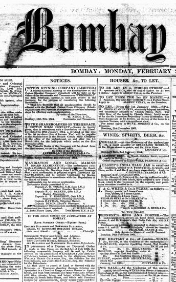 The Bombay Gazette, 22 February 1864