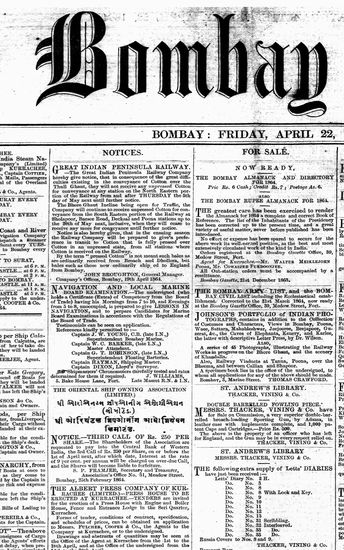 The Bombay Gazette, 22 April 1864