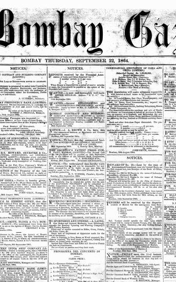The Bombay Gazette, 22 September 1864
