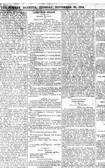 The Bombay Gazette, 22 November 1864