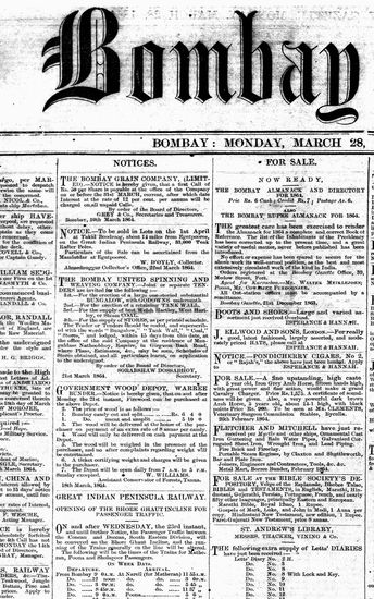 The Bombay Gazette, 28 March 1864