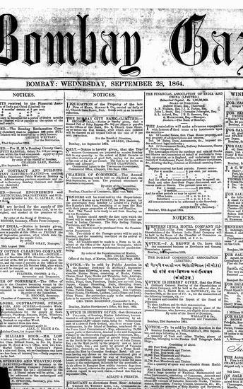 The Bombay Gazette, 28 September 1864
