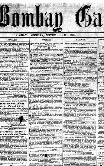 The Bombay Gazette, 28 November 1864