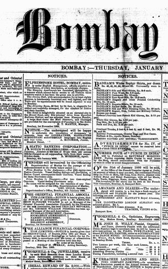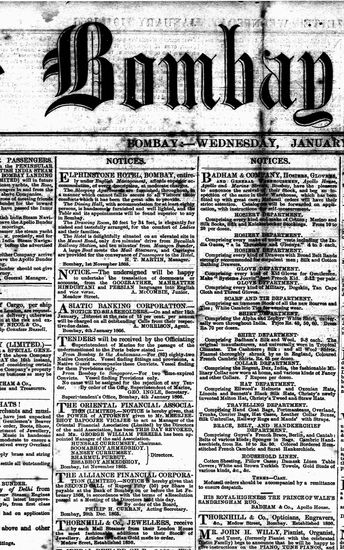 The Bombay Gazette, 4 January 1866