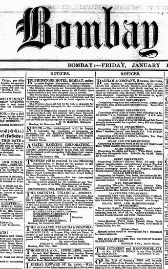 The Bombay Gazette, 12 January 1866