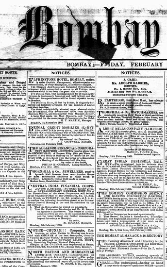 The Bombay Gazette, 23 February 1866